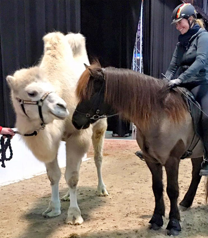 Wen und was man „backstage“ auf der Sweden International Horse Show so alles kennenlernt … hier beschnuppern sich Bassi und sein neuer Freund Herman. Großartig!