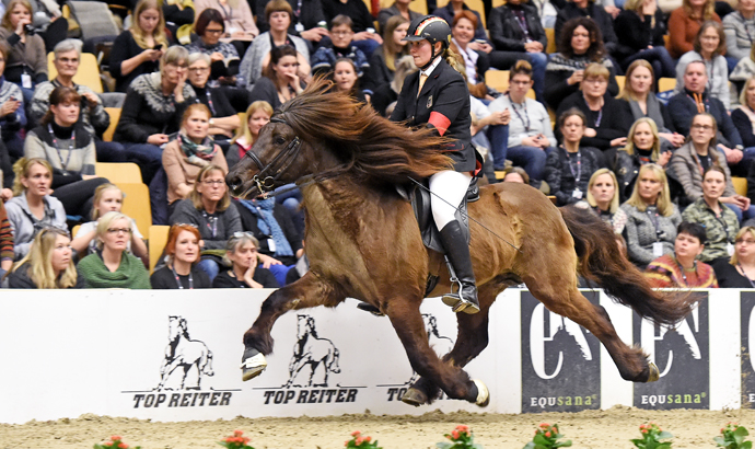 Ein richtig guter Auftakt in die Wettkampf-Saison 2017 ist uns beim WorldTölt im dänischen Odense gelungen. Zunächst gelang die Verteidigung des Viergang-Titels aus dem Vorjahr mit Kjalar frá Strandarhjáleigu auf notentechnisch noch höherem Niveau als 2016, und nur wenige Minuten später durfte ich über den Sieg im Fünfgangpreis mit Bassi frá Efri-Fitjum jubeln. Nicht ganz so einfach auf dem engen Indoor-Oval, umso glücklicher bin ich, dass wir’s mit vereinten Kräften hinbekommen haben. Das hat ganz viel Spaß gemacht!