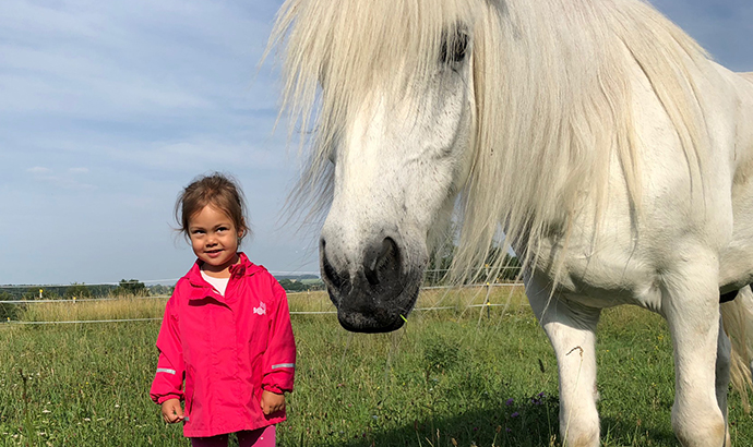 Kjalar ist ein ganz besonderes Pferd und schon seit vielen Jahren lieben wir ja nicht nur seinen sagenhaften Tölt und sein tolles Mehrgang-Getriebe, sondern an erster Stelle kommen stets der so freundliche und unvergleichlich leistungsbereite Charakter und sein ganz großes Herz … das er jetzt auch für Kinder entdeckt hat!