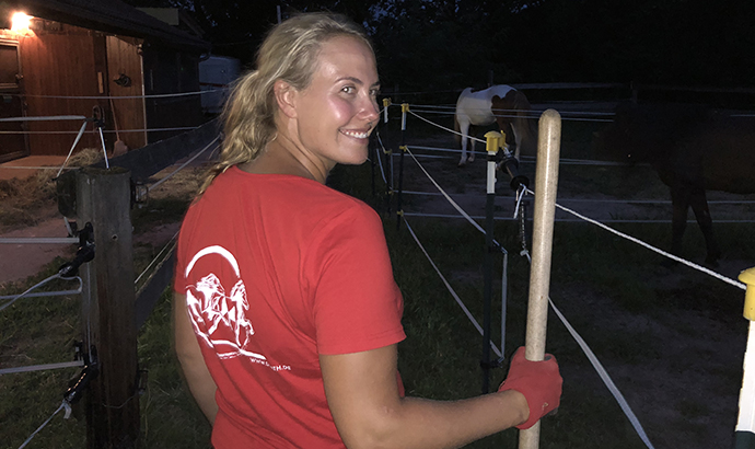 Aktuell weckt uns allmorgendlich um 5 mit größtmöglich unsanfter Bestimmtheit einer der wenigen normalerweise ernsthaft abzulehnenden iPhone-Klingeltöne („Alte Hupe“). Bei den wahnsinnig heißen Temperaturen tagsüber wäre es den Pferden gegenüber immerhin schlicht und ergreifend nicht zumutbar, das Training erst später zu beginnen, wenn die Sonne schon mit voller Kraft vom Himmel brennt.