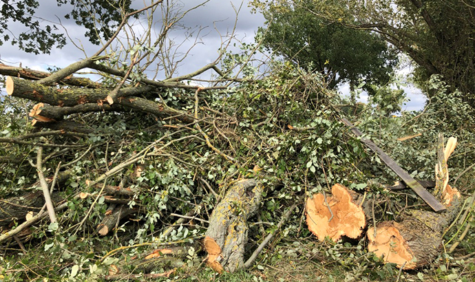 Die Temperaturen sind zwar immer noch hochsommerlich, trotzdem erleben wir ab und zu auch schon Petrus‘ erste herbstliche Launen. Heute Nacht hat’s hier mächtig gestürmt und dabei haben tatsächlich gleich mehrere Bäume „die Biege gemacht“. Zwei von ihnen haben dann auch unseren hölzernen Außenzaun angeknockt. Zum Glück sind unsere Pferde ja durch einen innenliegenden Stromzaun doppelt gesichert, daher ist ihnen nichts passiert.
