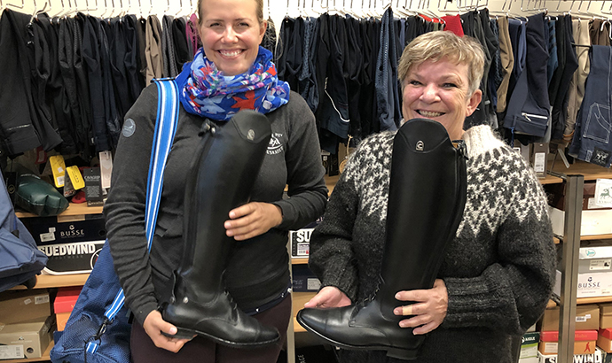Was lange währt, wird endlich gut … schon 2015 hatte ich die Ehre, beim WM-Qualifikationsturnier auf dem Gestüt Móarbær von der Jury mit dem „Feather Prize“ ausgezeichnet zu werden. Dotiert war diese Anerkennung von der Reiterstube Heib mit einer ausgesprochen großzügigen Prämie: einem hochwertigen Paar Reitstiefel. Auch in der Folgezeit hatte mir Marion mit Rat und Tat zur Seite gestanden, nur für die Stiefel, die man ja lieber in Ruhe anprobieren sollte als sie aus der Ferne „einfach so“ zu bestellen, hatten wir aber tatsächlich nie Zeit gefunden. Bis jetzt!