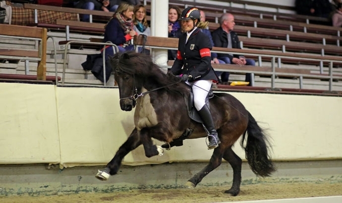 Schon als wir Salvör 2015 auf Island entdeckten, waren wir sehr glücklich, ein so schönes Pferd gefunden zu haben. Sie fühlte sich einerseits ganz fein und brav im Umgang und ebenso beim Reiten an, zudem zeigte sie von Anfang an ganz viel natürliche Balance, was wiederum eine enorm bequeme Abrufbarkeit aller fünf Gänge ermöglichte. Auch bei weiterem Training und steigenden Anforderungen bestätigte sich Salvörs lieber und freundlicher Charakter als im allerbesten Sinne „einfaches“ und stets leistungsbereites Pferd. Auf Anhieb konnte sie sich dann auch gleich bei ihrem ersten Turnier für die Leistungsklasse 1 im Fünfgang qualifizieren.