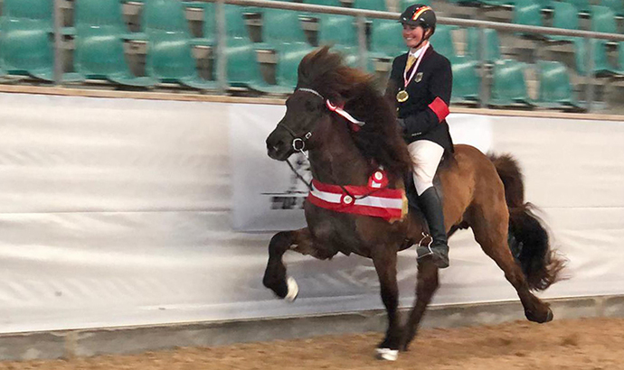 Auch Vörður kommt immer besser in Form, er gewann Silber in der T1. Gleich doppelt erfolgreich war Bassi mit seinen beiden eigenen Titelverteidigungen: Platz 1 in der Töltprüfung mit und ohne Zügel (T2) und in einem sehr coolen Fünfgangpreis.