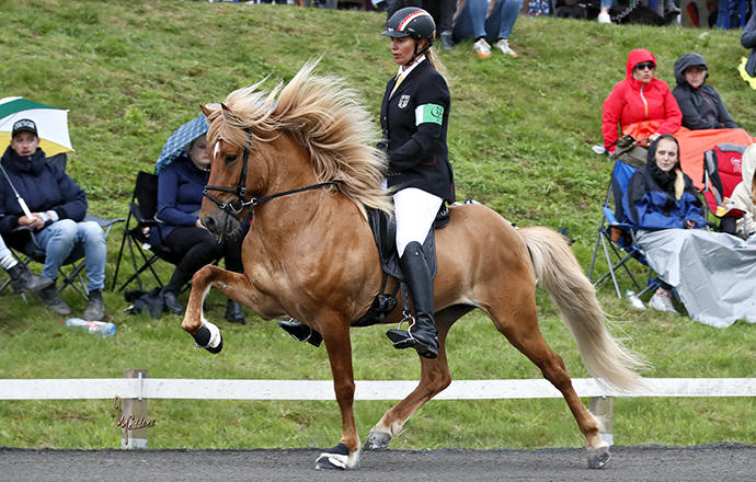Weitere Medaillen gab’s für Konsert frá Hofi, der gleich bei seiner ersten DIM im Töltpreis-Finale stand, im Viergangpreis für Ísöld frá Strandarhjáleigu, die 2020 noch in der Futurity gestartet war und jetzt auch gleich in die Endrunde der besten Viergänger eingezogen war …