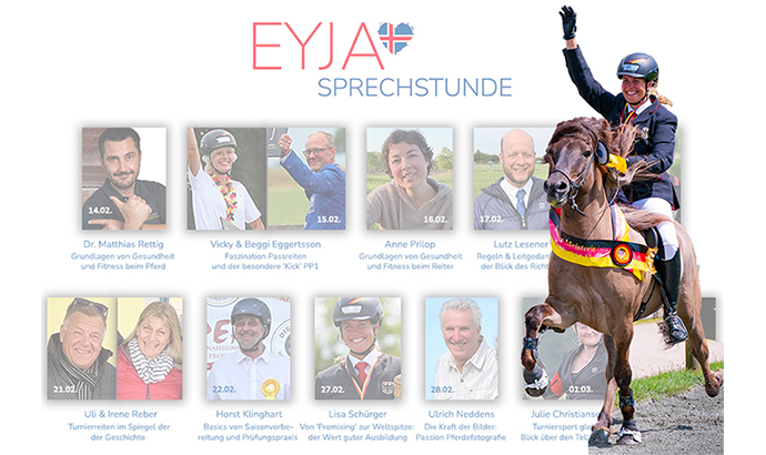 Warum es so wichtig ist, dass ein Pferd versteht, was sein Trainer und Reiter von ihm will, und wie wertvoll die gegenseitige Achtung ist – das und vieles mehr haben wir bei EYJA besprochen. Danke an alle, die dabei waren und deren Fragen vom Training über die individuelle Fütterung, die allgemeine Sorgfalt am Stall bis hin zur aktuellen Turnierpraxis ich (hoffentlich ganz gut) beantworten konnte. Hab‘ mich sehr gefreut, neben einer Reiher toller Kollegen bei diesen Sprechstunden dabeizusein, und gern empfehle ich auch Euch das Mitmachen. Man lernt viel, gleichzeitig herrscht eine ganz entspannte Atmosphäre und es ist eine gute Gelegenheit zum Dialog!