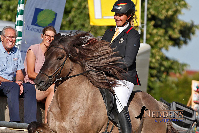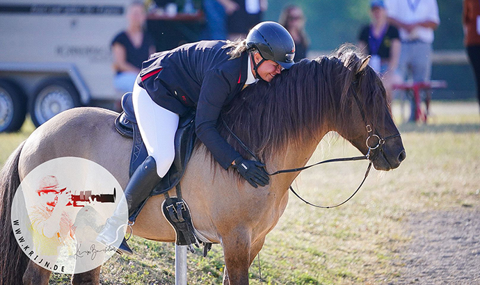 Byr und ich konnten auf der Deutschen Meisterschaft unseren Titel in der Fünfgang-Gesamtwertung verteidigen, nachdem uns eine richtig gute Mischung aus F1, T2 und Passprüfung gelungen war. Ich bin sehr stolz auf diese Wiederholung, freu‘ mich aber auch mit meinen Kollegen, die in Einzel und Kombi starke Ritte gezeigt haben. Uns alle hat nicht zuletzt auch das Publikum sehr fair und mit großer Begeisterung durch die Prüfungen getragen. Danke für dieses schöne Erlebnis!