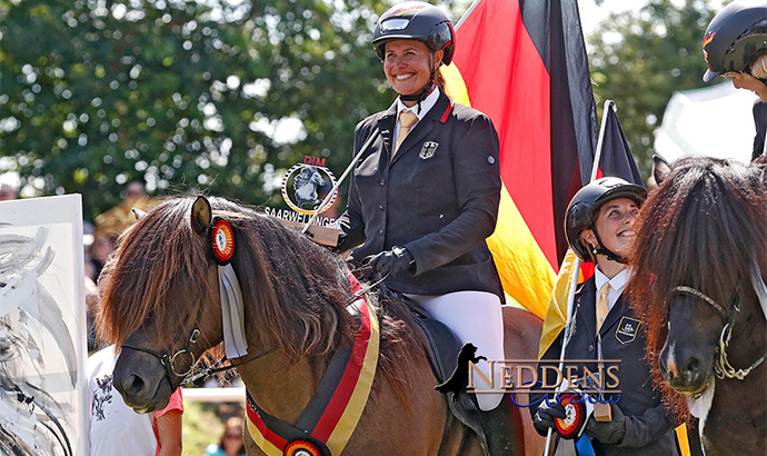 Die Gesamtsiegerwertung im Fünfgang auf der Deutschen Meisterschaft ist etwas ganz Besonderes, fordert sie uns Reiter doch zu größter Konzentration und Vielseitigkeit in F1, Tölt und Passprüfung. Mit Byr durfte ich diese Kombination (C5) in Saarwellingen nun zum achten Mal insgesamt gewinnen (fünfmal zuvor mit Bassi, dreimal bereits mit Byr), und darüber bin ich super glücklich. Gleichzeitig bin ich Byr enorm dankbar für seine Leistungsbereitschaft, denn gerade in den hinter uns liegenden 12 Monaten war vor allem ich seibst nach meinem Unfall nach der WM nicht immer so stark und stetig als Trainingspartner für ihn da, wie er es verdient gehabt hätte. Ich glaube aber einerseits an ihn und ebenso an uns als starkes Team.