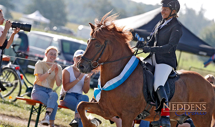 Was für eine Stute! Gjóla vom Schloßberg, meine junge Bassi-Tochter, an die ich von Beginn an zu 100% geglaubt habe und mit der ich 2022 die DIM-Futurity am Eichenhof gewinnen konnte, ist nun auch im „richtigen Sport“ angekommen. Sie hat in Hammersdorf ganz souverän die Bayerischen Meistertitel sowohl in der Töltprüfung T2 (8er Reihe im Zügelüberstreichen) wie auch im Fünfgangpreis F1 (bis 8,5 im Rennpass) gewonnen. Ich freu’ mich so sehr, mit dieser 2016 bei uns in Zachow gezogenen und selbst ausgebildeten Traumstute nun endlich zeigen zu können, was in ihr steckt.