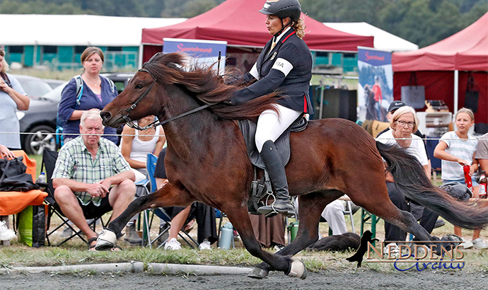 Auch Krókur frá Stóra-Hofi möchte ich nicht vergessen. Beim Regenturnier Anfang Juni in Möllenbronn hatten wir unseren ersten gemeinsam Turnierstart, mittlerweile hat er deutlich mehr Routine entwickelt und wird in allen fünf Gängen kontinuierlich stärker und besser. Nach der F1-Vorrunde hielt er sogar die Pole Position. Danke an den Besitzer von „Króki“, Jörg Schaedler, für sein Vertrauen mit diesem schicken Scheckhengst, den ich sehr mag und gern trainiere.